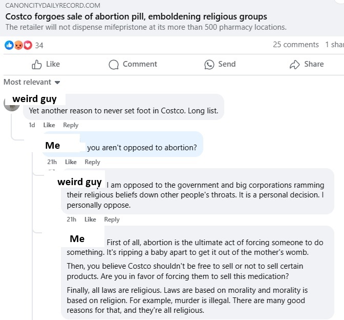 The article doesn’t say that Costco is opposed to abortion. I just says that they’re not selling mifepristone. How is them not selling abortion drugs ramming their religious beliefs down anyone’s throats? What about all the other things they don’t sell?